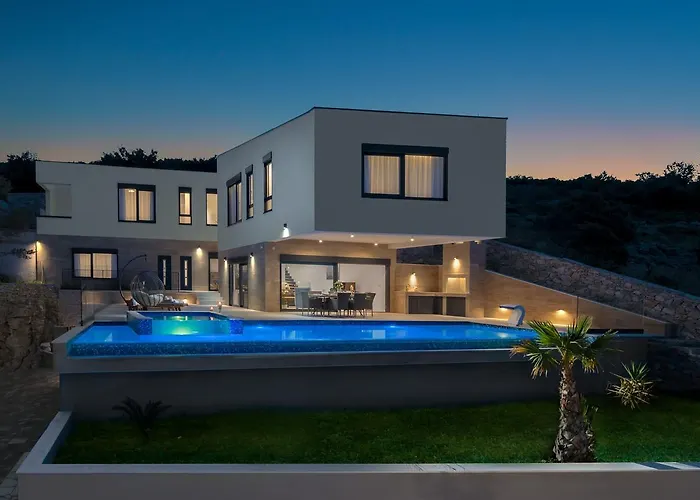 Luxury Villa Gold Pearl With Pool는 Beach Vela Draga 인근에 위치하고 있으며 일광욕 테라스, 휘트니스 센터, 온수 수영장 제공합니다. 시피코 궁전는 3.7킬로미터 이내의 거리이며, 트로기르 마리나는 10분 거리입니다.